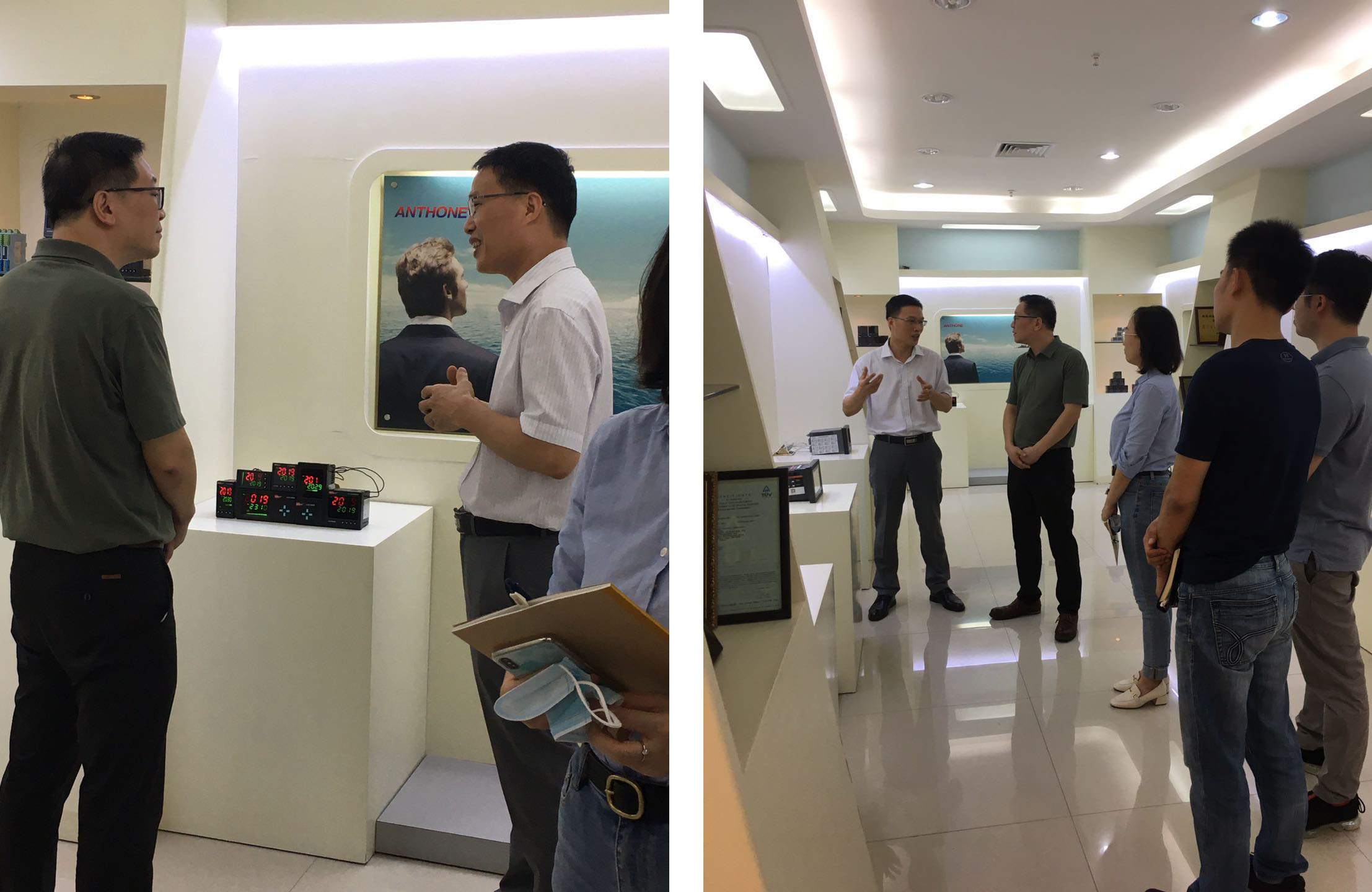 首先,廈門安東電子有限公司總經理肖國專先生陪同領導們參觀了產品展廳,先介紹了智能電力監測儀的功能及用途,應用于廈門地鐵項目及樓宇建筑項目的情況。接著介紹了觸摸屏無紙記錄儀,主要用于工業行業的溫度、壓力測量記錄,并介紹了最新研發的與互聯網結合的模式,可對產品進行遠程維護,特別是疫情期間可以不出門就能解決問題,領導們給予極大的贊許。隨后,介紹了溫控表和壓力變送器產品,重點提到熔噴布生產設備上起到的作用,結合時事需求,不斷研發與時俱進,研發就是企業的第一生命力,得到領導們的認可。