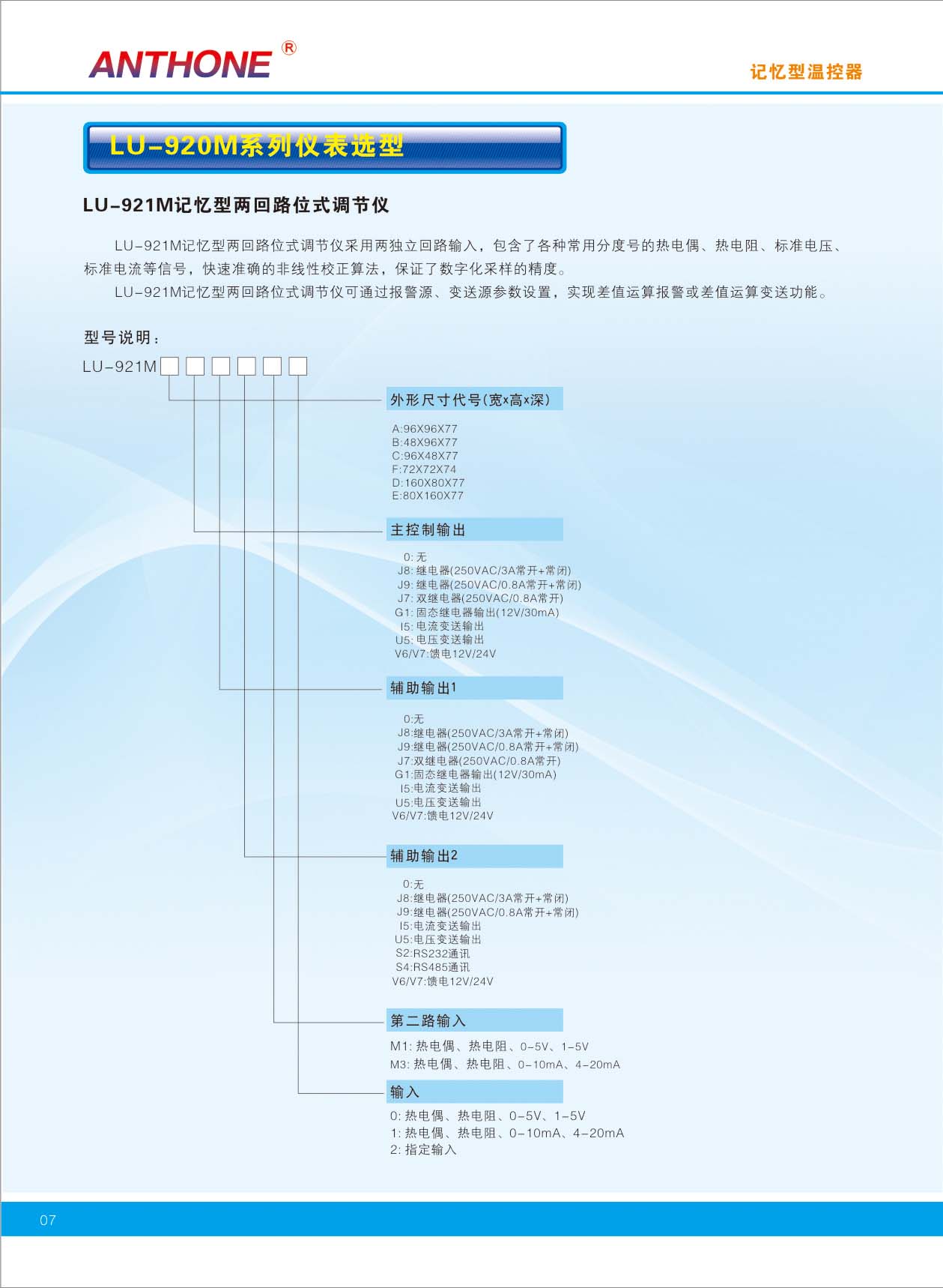 LU-921M兩回路位式調(diào)節(jié)儀是一種采用全新設計理念的高性能、高可靠性智能型工業(yè)調(diào)節(jié)儀。廣泛應用于化工、陶瓷、冶金、石化、熱處理等行業(yè)的溫度、流量、壓力、液位等自動控制系統(tǒng)。