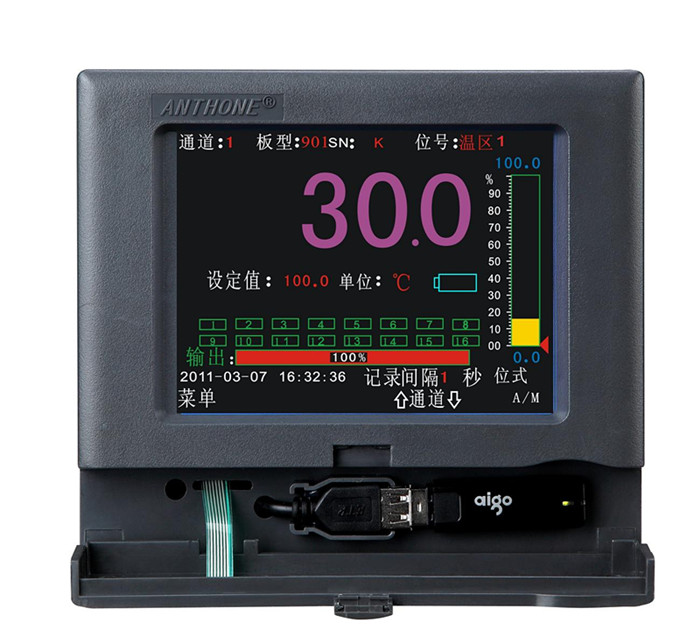 LU-C3000系列彩色液晶顯示過程控制無紙記錄儀,可以為一至八通道可編程PID控制,程序控制曲線多可達一百段的無紙記錄儀。儀表輸入為全切換萬能輸入,可輸入熱電偶、熱電阻、標準電流等信號,可提供饋電輸出。直接連接微型打印機、彩色噴墨打印機,可同時打印多條曲線,可打印用戶指定時間的實時歷史數據及曲線;通過RS232通訊接口與便攜計算機、掌上電腦(PDA)連接,直接讀取儀表歷史數據,再傳給計算機,通過數據管理軟件,可對所取數據進行分析、存檔、打印、處理。通過RS485通訊接口,可與組態王、MCGS等專業組態軟件組成實時監控系統。并采用現代USB接口技術,直接將數據存儲于U盤,記錄時間更長。