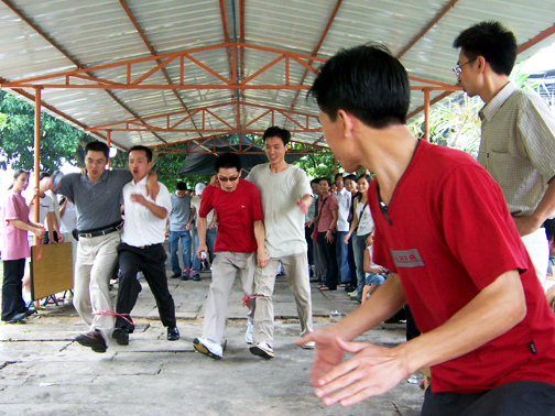 在動工燒烤之前有2項激情熱身賽----拔河比賽、雙人接力賽,員工根據事先安排分為A、B、C、D四組。比賽緊張而激烈地進行著,竟爭的場面不亞于奧運會。裁判嚴肅公正,隊員也奮力拼搏。尚未比賽的兩組充當啦啦隊,加油!加油!加油!多么激動人心的吶喊。不多時已有一組決出了勝負,她們高興地歡呼著。經過最后的角逐,勝利者產生了,你看他們笑的多開心,勝利的喜悅都寫在了臉上。接下來的雙人接力賽同事們也樂在其中,配合默契,互相協助共同邁著大步向前沖,激發出團隊的合作精神以及更高昂的工作熱誠和拼搏創新的動力,使團隊更富凝聚力。