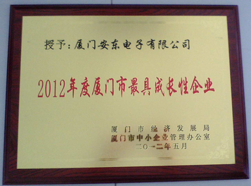 喜訊:廈門安東電子榮獲2012年度廈門市最具成長性中小企業