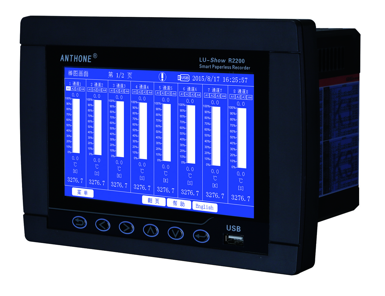 安東電子最新一代無紙記錄儀 LU-Show R/C2200 R/C3200智能觸摸屏無紙記錄儀,具有開機視頻秀、開機圖片秀、工藝流程秀、“幫助”秀、滑屏動感操作、截屏打印、板卡式模塊化結構、模糊PID控制、可編程報警輸出、最高等級抗群脈沖干擾、通道擴展功能等優點。