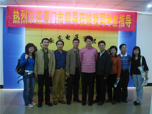 2008年4月19日下午,廈門市政協(xié)副主席莊威、市政府副秘書長陳永茂、市科技局副局長徐平東、市財政局企業(yè)處副處長蔡惠敏、市科技局副調(diào)研員吳志偉和廈門招商中心孫海濤等相關(guān)職能部門領(lǐng)導(dǎo)一行六人,在廈門安東電子有限公司肖國專總經(jīng)理的陪同下蒞臨安東公司重慶研發(fā)中心考察指導(dǎo)。