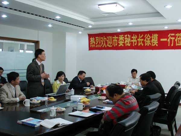 4月28日上午,中共廈門市委常委、市委秘書長徐模親率市委辦公廳、市科技局、市招商局、廈門大學專家、廈門市委重點項目領導小組辦公室等相關領導蒞臨廈門市軟件園二期,對廈門安東電子有限公司進行考察調研及工作指導。安東電子總經理肖國專先生與公司相關負責人吳副總、張總助、市場鐘經理等熱情接待了徐秘書長一行。