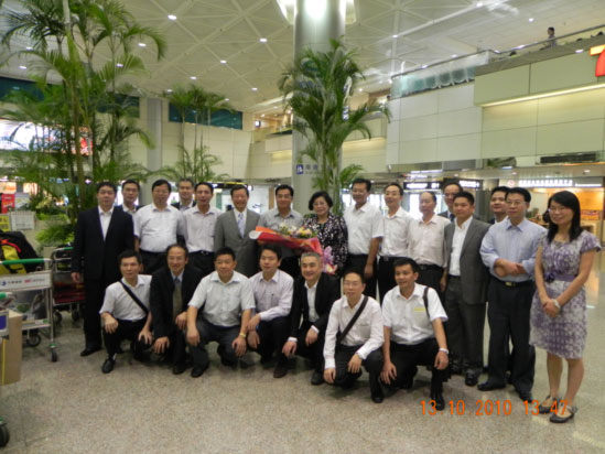 10月13日,考察團抵臺, 臺灣總統府國策顧問蔡鈴蘭女士親自接機,機場留影